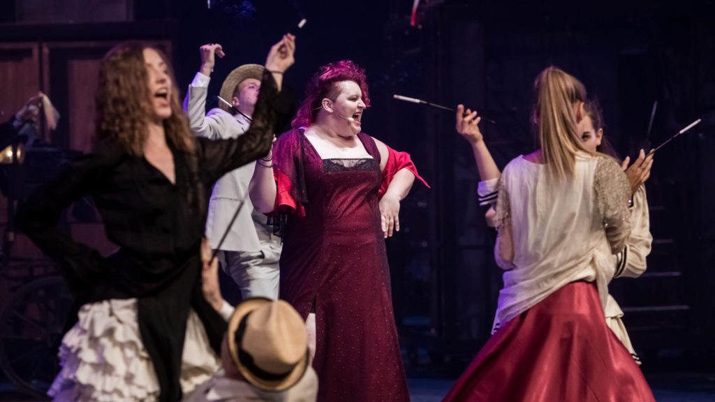 Reżyser wykorzystuje wiele form przekazu i bawi się nimi. Ruch sceniczny czasem przekształca się w taniec, a czasem w pantomimę. Kolorowe kostiumy, stworzone przez Martę Hubkę, wprost wirują na scenie, a całość tworzy spójny obraz, którego odbiór zaspokaja zmysł estetyczny widza. Ten spektakl po prostu trzeba zobaczyć.